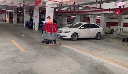 車庫的面積很多,每天都有很多車輛來來往往,灰塵很多,如果單純靠人工清掃,效率是非常低的,給人的觀感就很不好,所以很多物業公司都會選擇洗地機..
